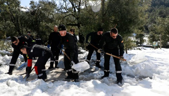 Salvamontiştii dintr-un echipaj de salvare de pe insulă au ajuns la mănăstire marţi. Şi alte zone ale Spaniei s-au confruntat cu o vreme neobişnuit de rece, iar temperaturile pe timpul nopţii au scăzut până la -10 grade Celsius în regiunea Munţilor Pirinei.