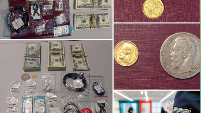 În rezultatul controlului vamal, în valiza pasagerului au fost depistate monede și articole de bijuterie (presupuse a fi din argint), și 18800 dolari americani.