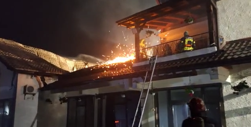 Unitatea de cazare s-a aprins ca o torţă, după ce la acoperiş a izbucnit un incendiu de proporţii. Flăcările s-au extins cu repeziciune, iar la scurt timp, mansarda a fost şi ea înghiţită de vâlvătaie.
