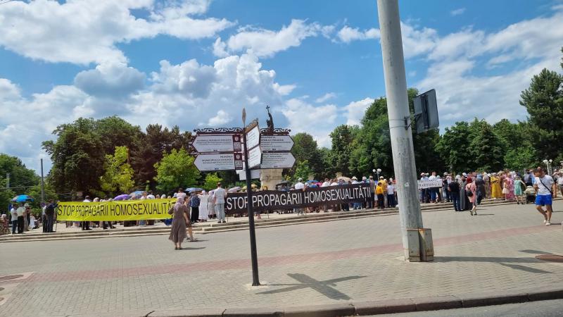 În centrul capitalei are loc un protest anti-LGBT. Mai mulți oameni s-au adunat cu pancarte „Stop propagării homosexualității”, scrie unimedia.info.