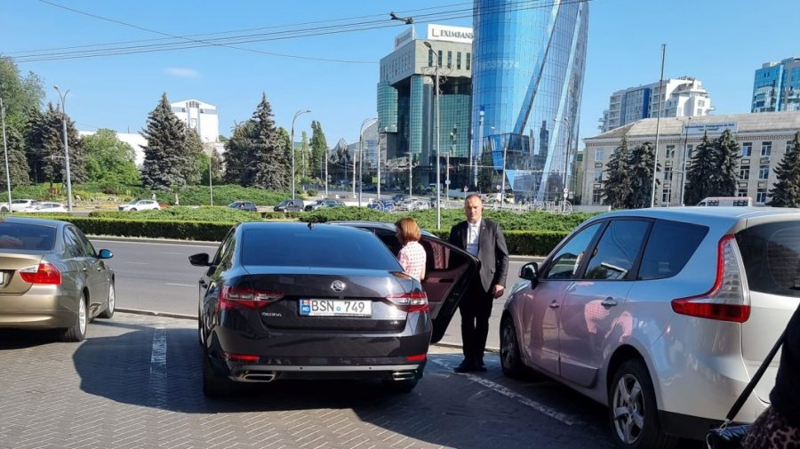 Maia Sandu, după cumpărături, a urcat într-o mașină de serviciu marca Skoda.