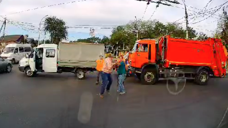 În stradă ca în ringul de box. Doi șoferi de camioane au oprit în plin trafic și au sărit la bătaie unul la celălalt. Imaginile au fost surprinse de alți șoferi, pe o stradă din Tiraspol.