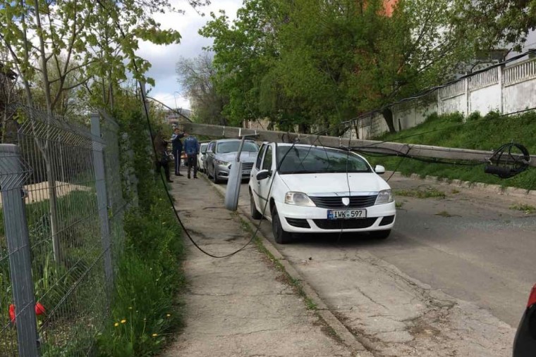В столице столб электропередач упал на автомобиль. По сообщению свидетелей также упало и дерево, сообщает realitatea.md